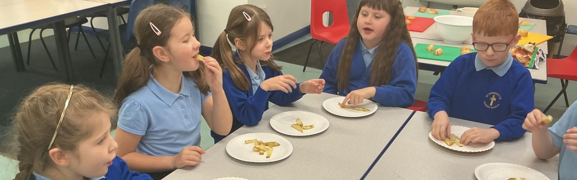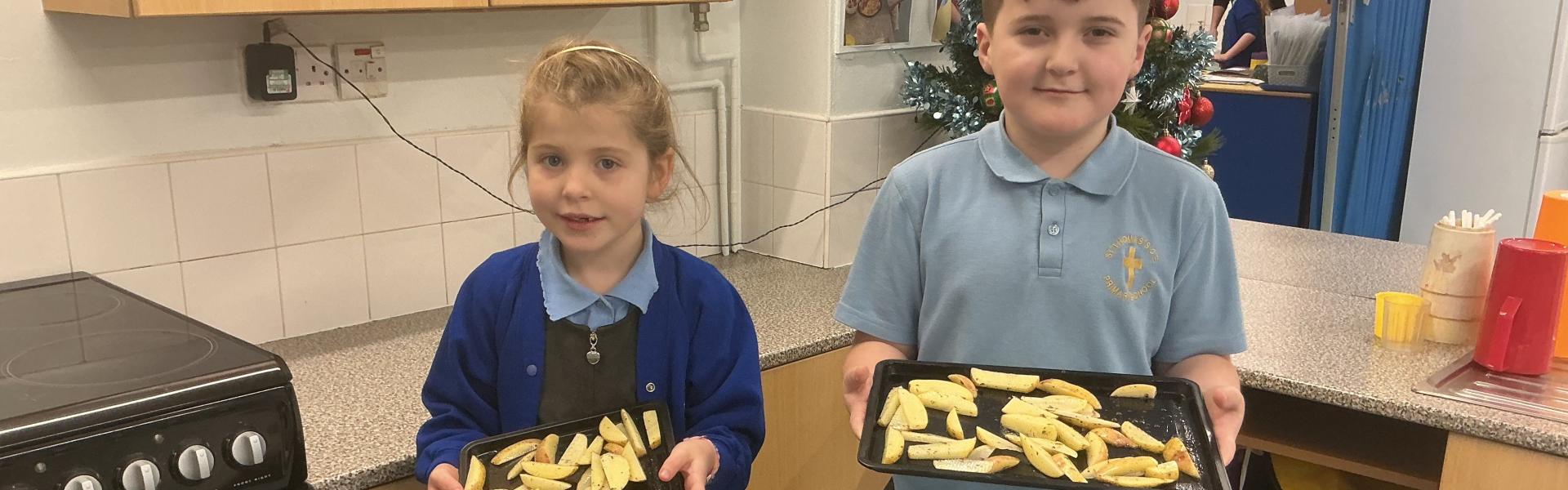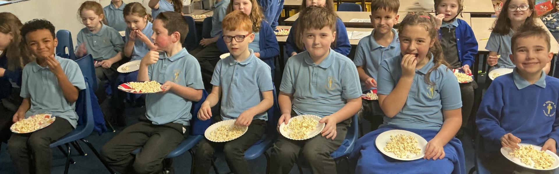 We learned how to cook 'Healthy Chips' and 'Homemade Popcorn' in our Food Technology lessons.